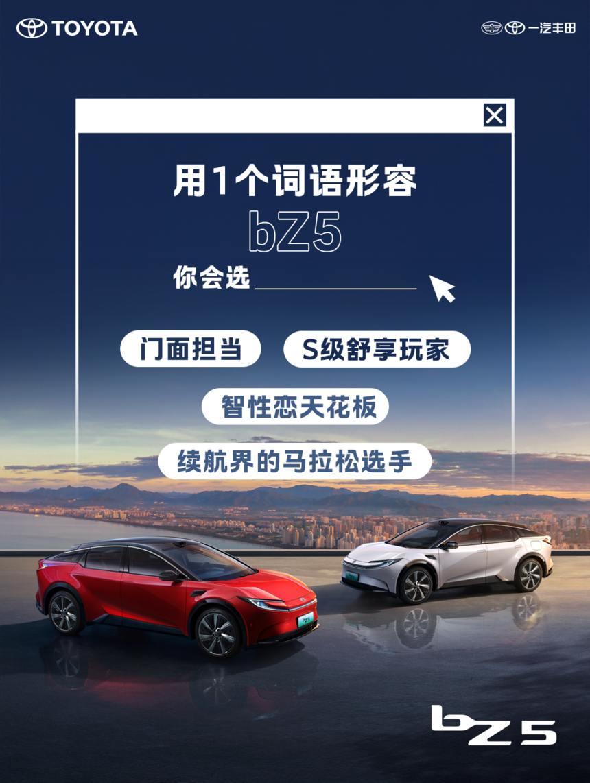 用一个词形容bZ5 你会选?pick你心中的bZ5吧 门面担当,S级舒享玩家,智性恋天花板,续航界的马拉松选手